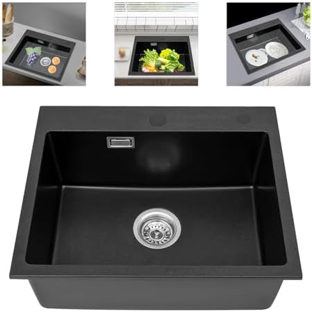 Kuchenny zlewozmywak kwarcowy 55 × 45 cm czarny