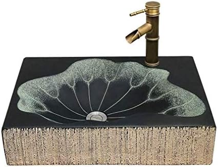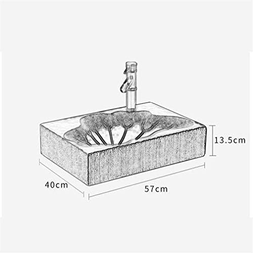 Artystyczna prostokątna umywalka w chińskim stylu wykonana w całości z kamienia naturalnego. Głęboka rzeźba i surowy wygląd. Rozmiar 57 × 40 × 13,5 cm. Doskonała do hoteli, restauracji i domów w stylu orientalnym czy wiejskim.